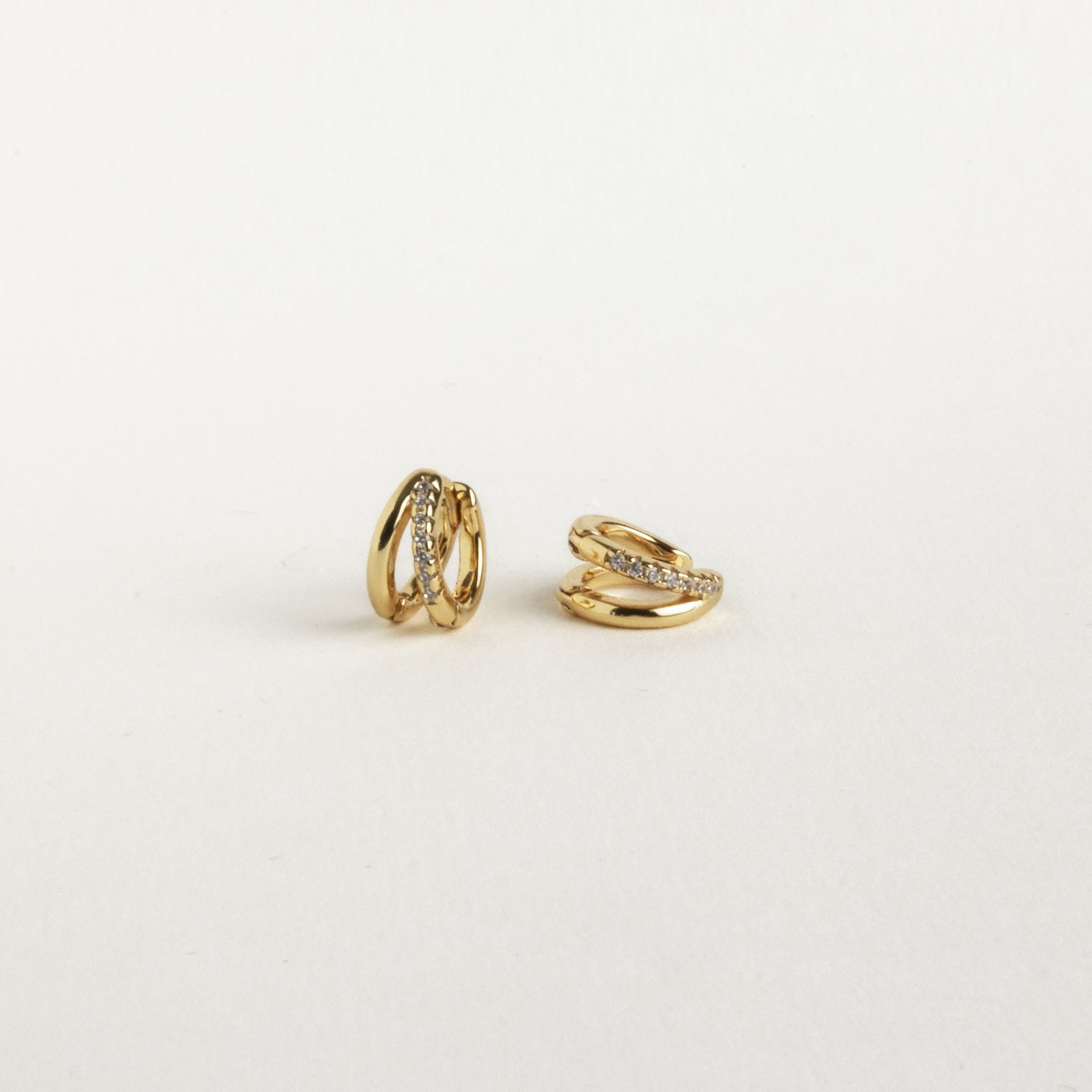 The Amelia Duo Huggies bring a lovely, multi-textured approach to your lobes. The smooth metal and pave accents bring a touch of the dynamic to the subtle.