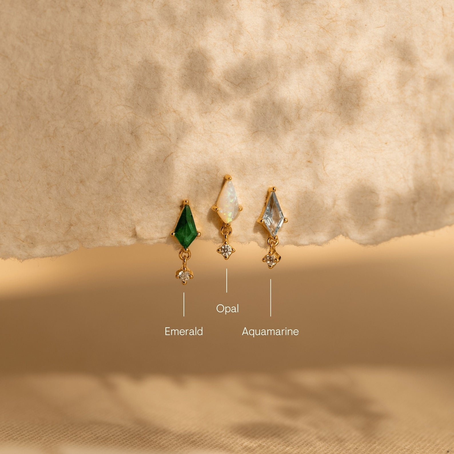 As delicate and whimsical as a kite flying in the breeze, our Kite Gemstone Studs have the same soft quality. The unique geometrical shape paired with a dangling CZ Diamond makes them an effortless choice when deciding what jewelry to wear. And with three gemstone options, you will never go without choices.