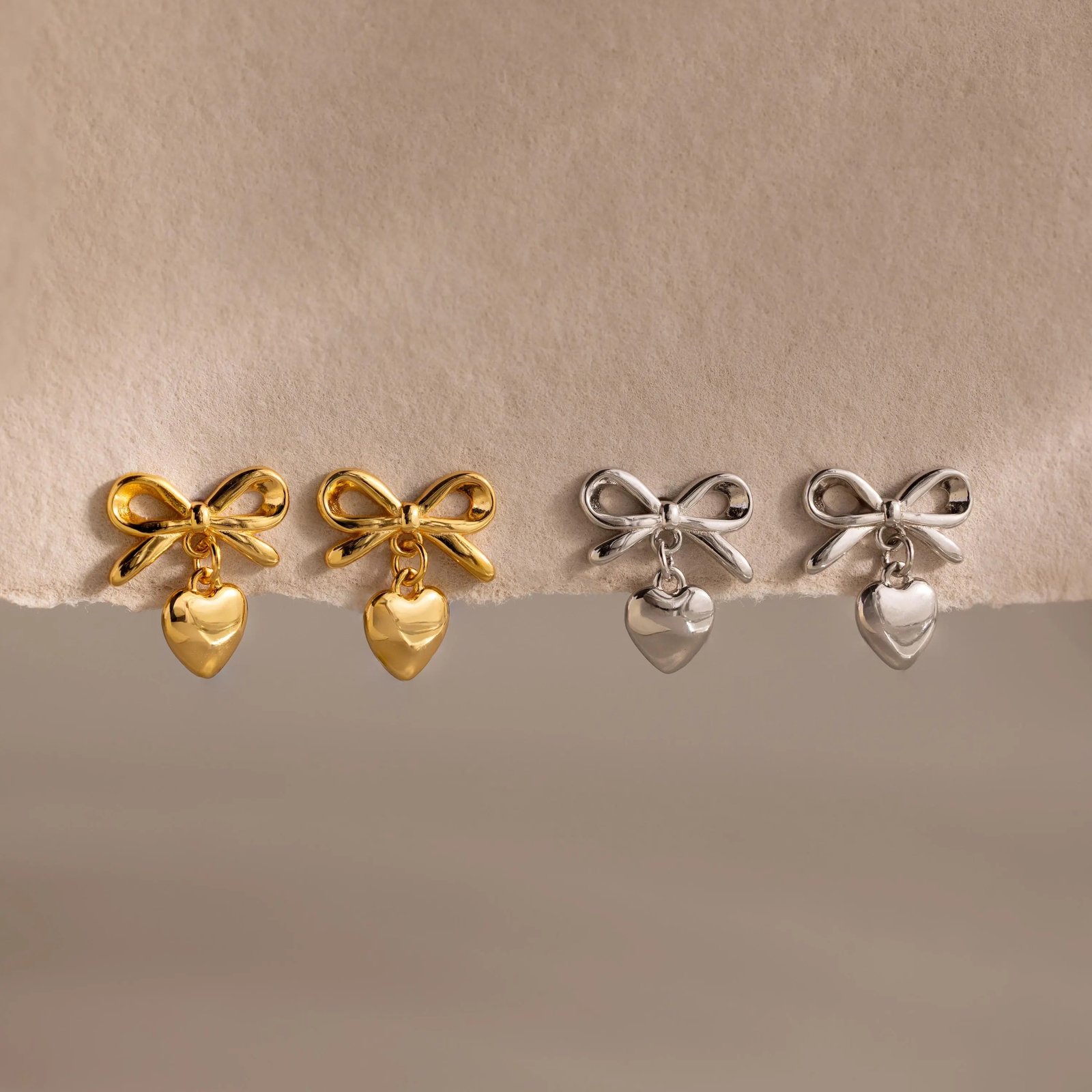 Tags: 18K Gold, Bow, CL,, Coquette, Drop Earrings, Earrings,, gauge-test,, Heart, Parent, Ready to Ship, Sale Eligible, Shop All, Sterling Silver, Studs,, The Sweetheart Collection, Valentines