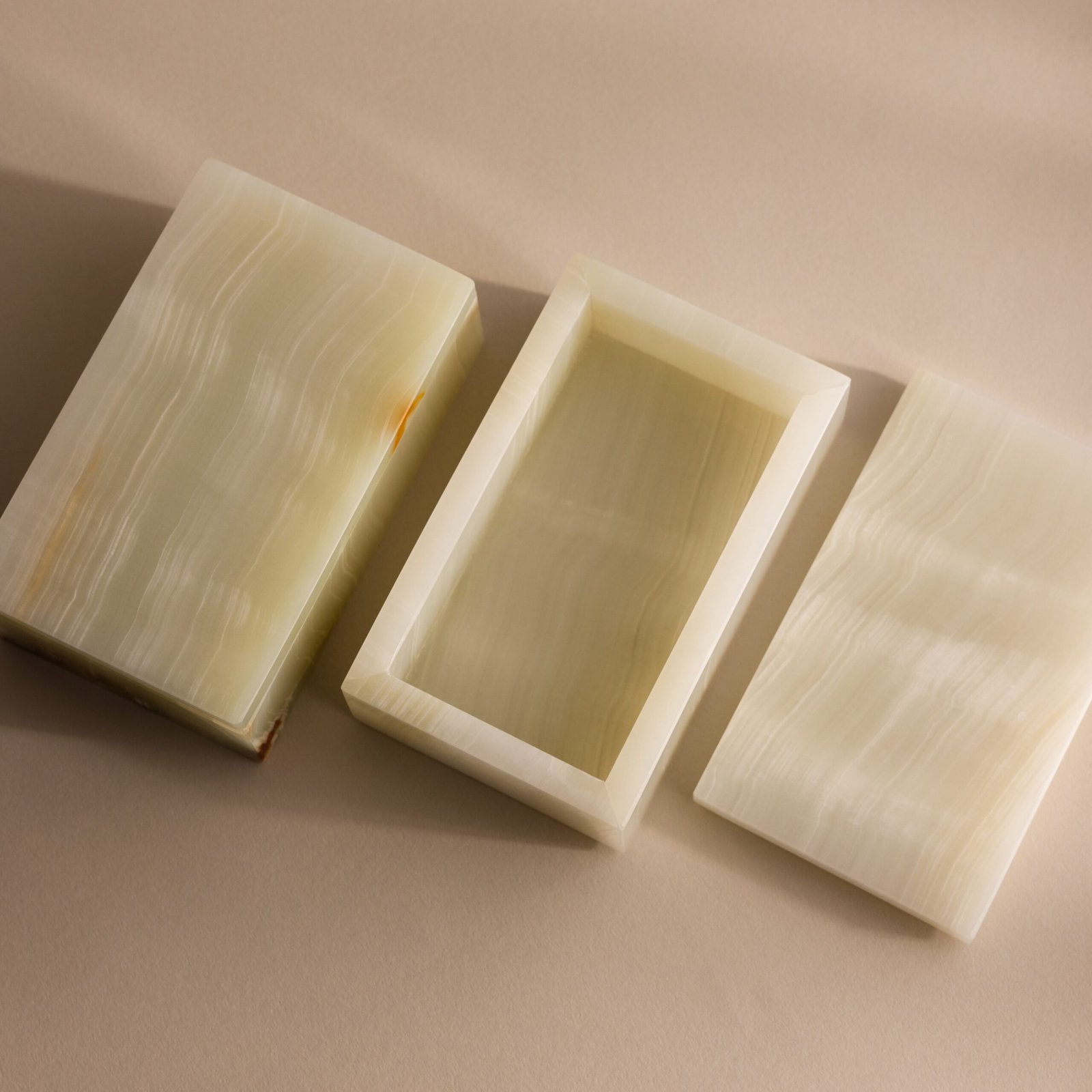Elevate your vanity or nightstand with the timeless beauty of our Green Onyx Jewelry Box. Handcrafted from natural green onyx stone, each piece showcases soft, milky green tones with delicate white veining and subtle earthy variations—making every box truly one of a kind. Ideal for storing rings, earrings, bracelets, or keepsakes, it doubles as a decorative accent that brings natural warmth and sophistication to your dresser, coffee table, or shelf.