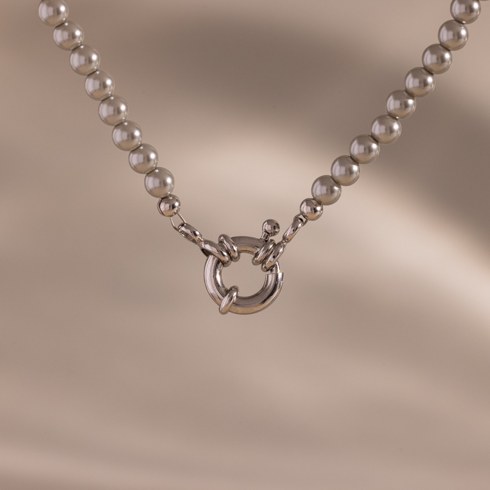 A fresh take on classic pearls, our Grey Pearl Charm Necklace blends soft luster with a bold, sculptural accent. Smooth gray pearls are strung into a refined strand, finished with a gold carabiner clasp that brings a contemporary edge to the timeless silhouette. Elegant on its own or layered with your favorite charms, it’s a piece that balances sophistication with modern style ♡