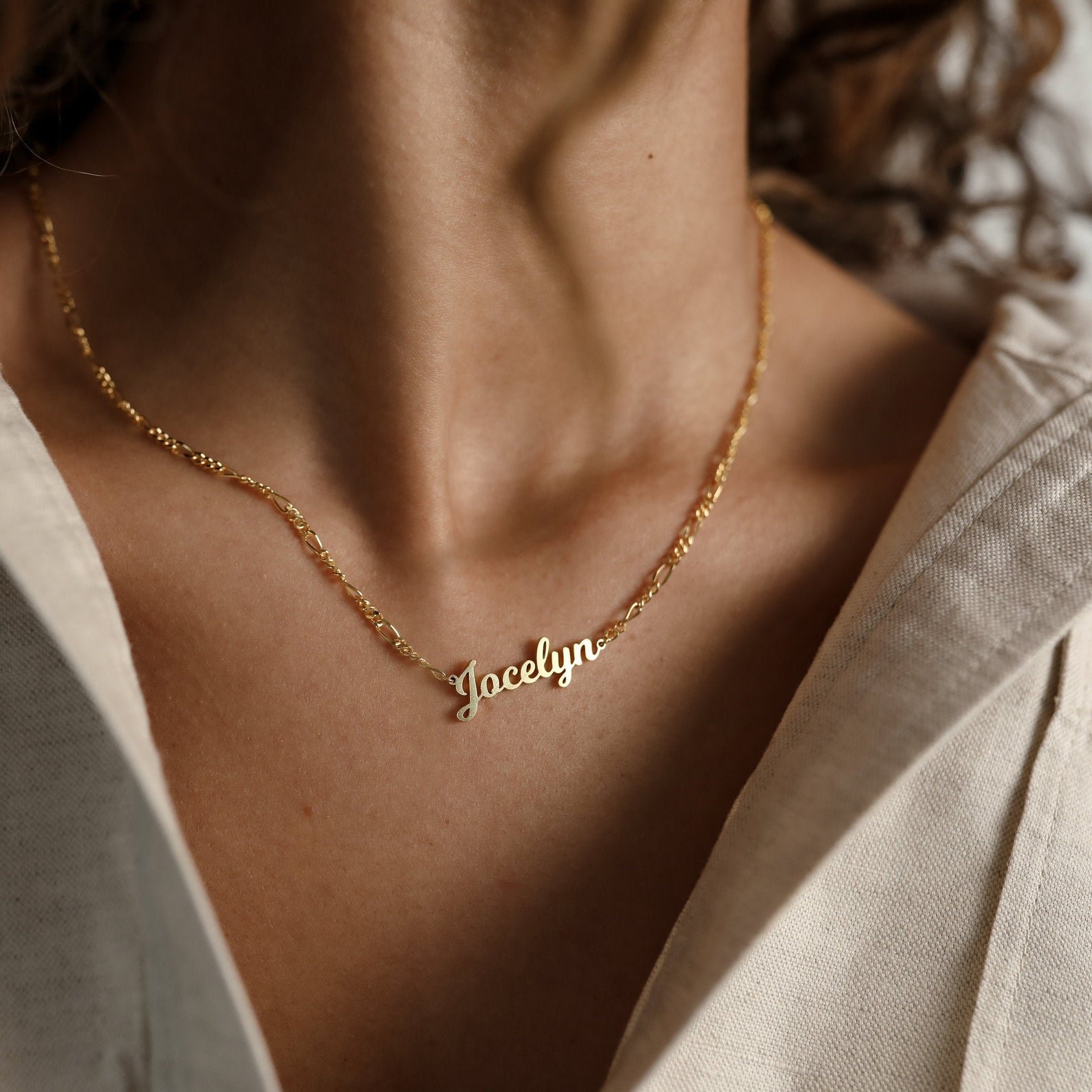 Mellow Name Necklace in Figaro Chain
